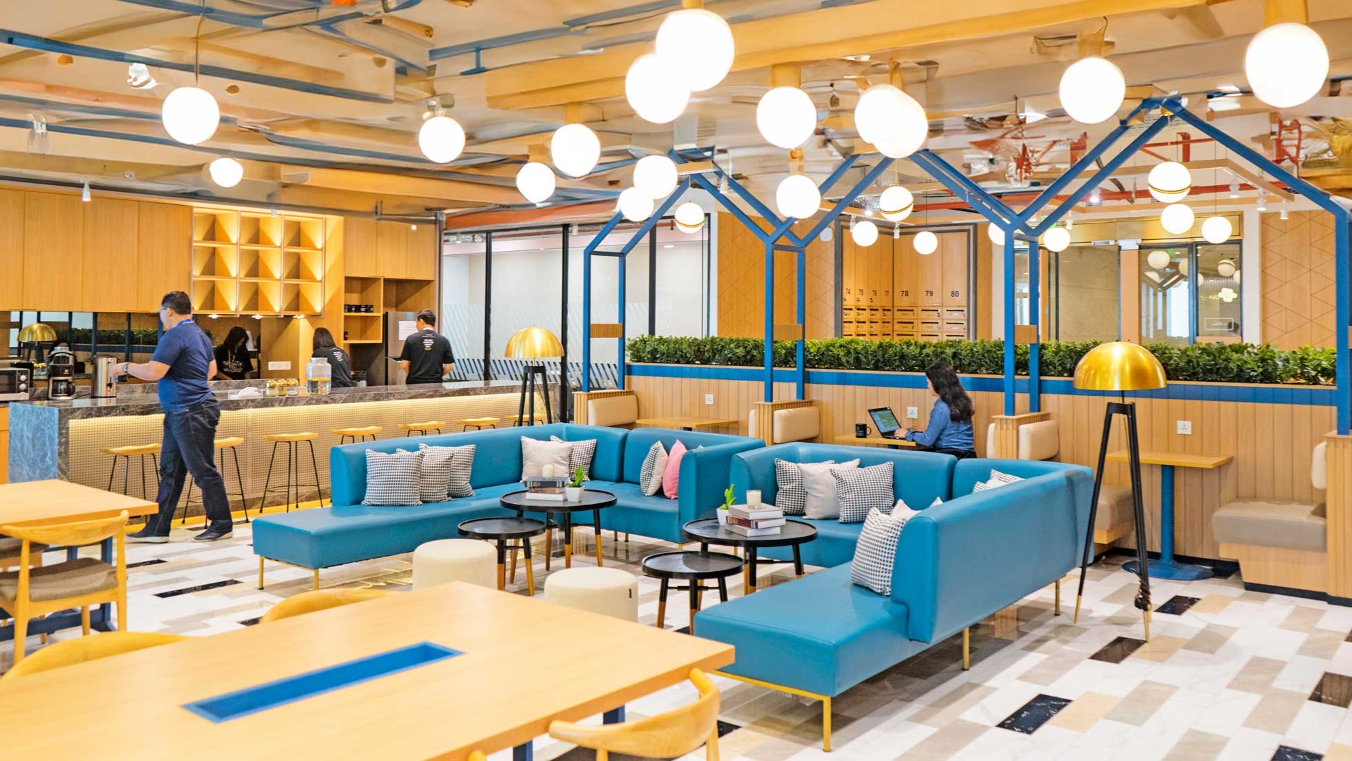 Ruang kerja terbuka dengan meja komunal untuk bersama